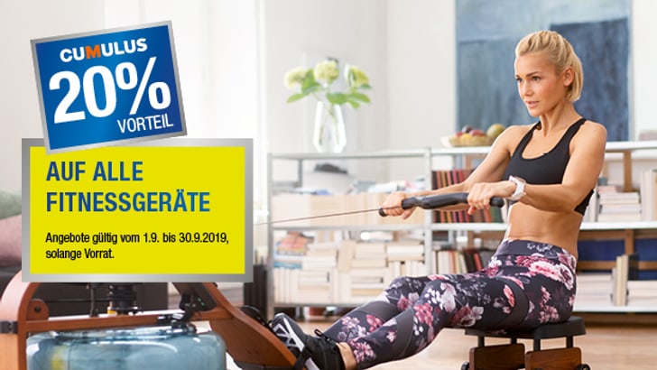 Profitieren Sie von 20% Cumulus-Vorteil auf alle Fitnessgeräte. Ob Crosstrainer, Ergometer, Laufband oder Rudergerät; das Trainieren macht so bei jedem Wetter Spass!